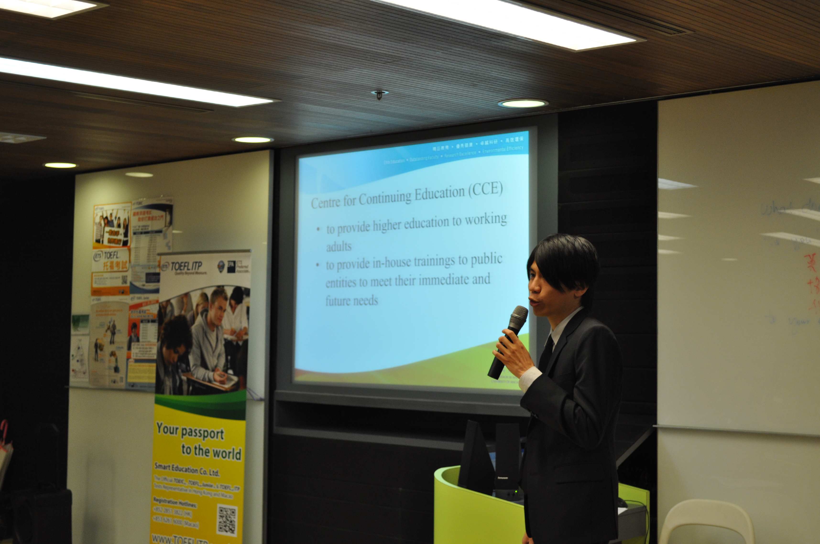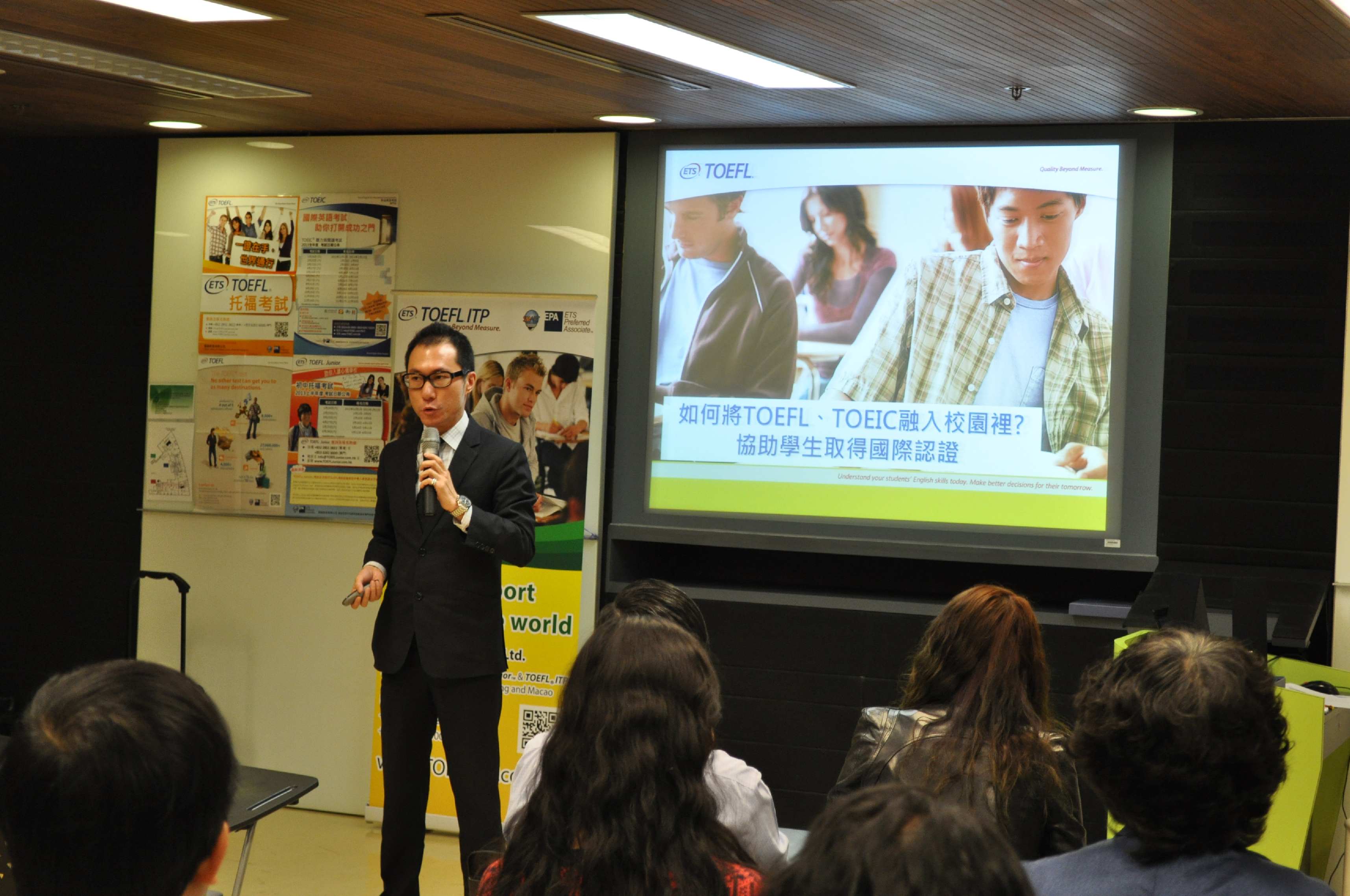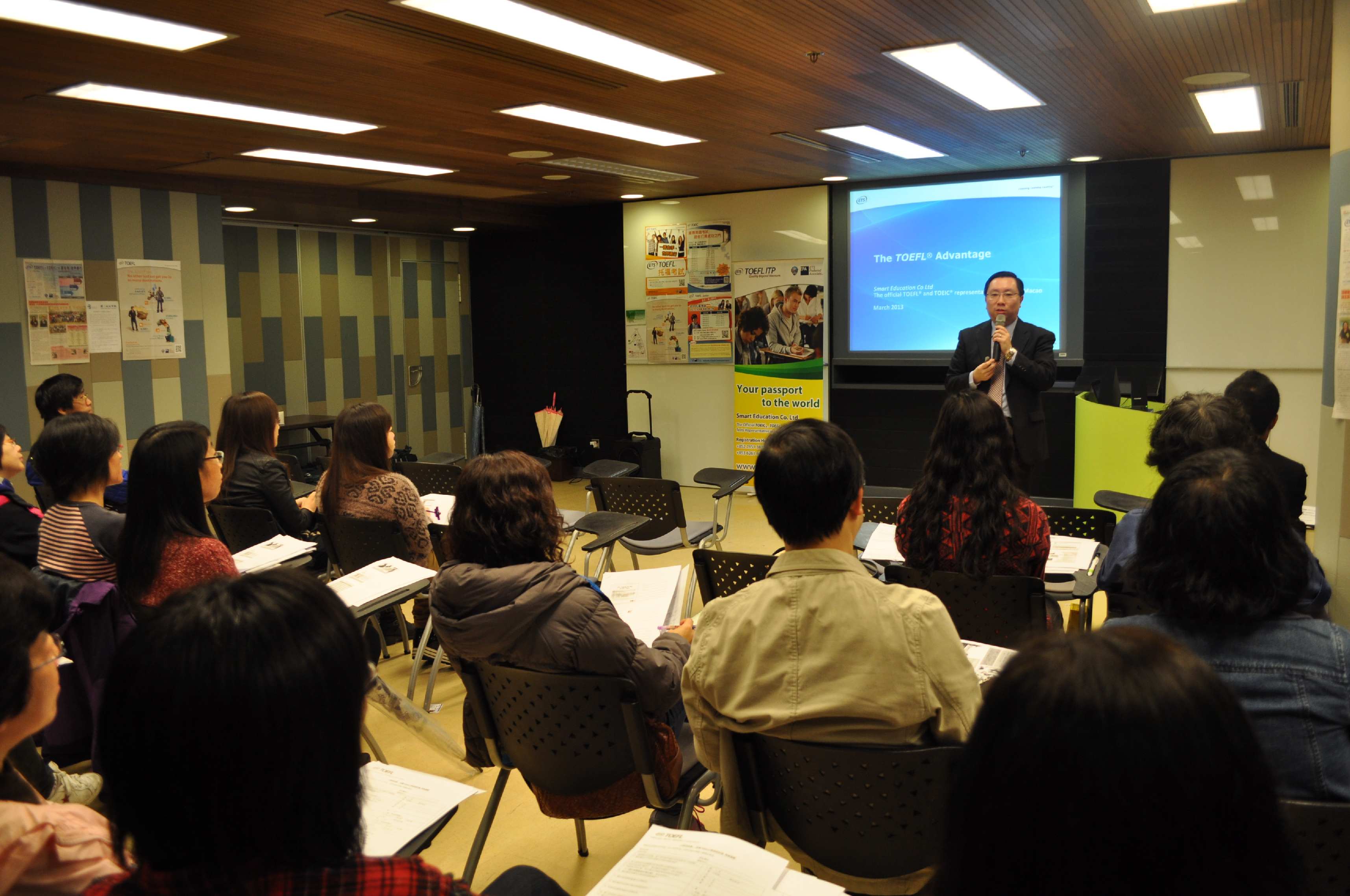 The TOEFL® Advantage SeminarThe TOEFL® Advantage Seminar organized by Smart Education Charitable Foundation on 2 March, 2013 at the Direcção dos Serviços de Educação e Juventude – Centro de Educação Permanente was a huge success. It has attracted many principals and teachers from Macao to attend. We invited three speakers, including Mr. Kevin Chan – President of Smart Education Co. Ltd.; Mr. Vincent Cheng – Sales Director of Global Assessment Division of Smart Education Co. Ltd. and Mr. Harvey Lo – Representative of Centre for Continuing Education of University of Macau. First of all, Mr. Chan introduced the world's largest private educational assessment and research organization - Educational Testing Service (ETS) to the attendees. ETS develops, administers and scores more than 50 million tests annually worldwide, including the TOEFL® tests and the TOEIC® tests. Mr. Chan talked about the TOEFL® family Assessment, including TOEFL® iBT, TOEFL® ITP, TOEFL® Junior and TOEFL® Primary and explained how they can help students to enhance their competitiveness. Recently, the TOEFL® family added 2 new members – The TOEFL® JuniorTM and TOEFL® Primary tests. Apart from helping students to pursue further study in overseas, these two tests can evaluate students' English proficiency objectively. Mr. Vincent Cheng shared how TOEIC® and TOEFL® ITP could help students in Macau to prepare for their future and enhance their competitiveness, basing on his extensive experience in the education field. Mr. Cheng pointed out that tourism industries were growing in a fast pace in Macau. It is important for students to have an international certificate to demonstrate their English proficiency, either to further study or seek a job. Mr. Cheng said many overseas universities had set a TOEFL® score as an entry requirement. To stand out, proficiency in English is a must for all students. At last, Mr. Harvey Lo from Centre for Continuing Education of University of Macau introduced international assessment preparation courses to the principals and teachers, including: TOEFL®, TOEIC®, SAT, ACT and GRE tests. The University of Macau is one of the official centres of the above tests. They provide courses and public tests to local students and people who are currently employed. The seminar also provided an opportunity for the participants to share their teaching strategies. It allowed them to have a better understanding on international English assessment as well as how these assessments can help students to enhance their English levels. For more photos, please click here